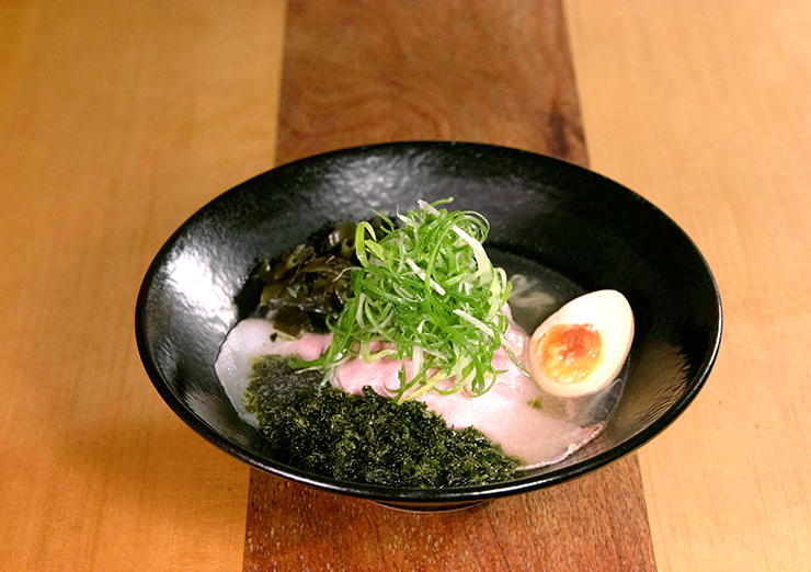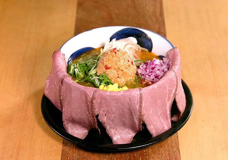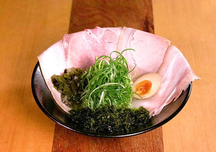 1972年池袋創業時(サッポロ 武山ラーメン)の先代のレシピをアレンジたけ虎店主二代目で五十年かけて作り上げた渾身の一杯 をぜひお試しください。豚骨と鶏モミジの旨味に豆味噌と米味噌をブレンド。 手作りの鶏油で炒めた青森県産ニンニクと高知産生姜がさらに風味を引き立てました。